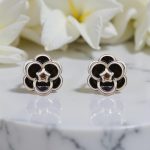 Обеците са изработени от метална сплав, с класически дизайн камелия.